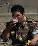 在海拔4300多米的當(dāng)雄公路段見到魯海山的時(shí)候,他剛乘車13個(gè)多小時(shí)從格爾木趕回來。他中等個(gè)頭,黝黑臉龐,說話時(shí)目光炯炯。