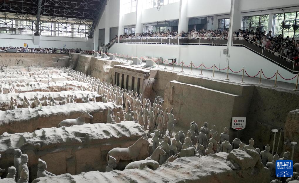 暑期将尽,但位于陕西西安临潼区的秦始皇兵马俑博物馆旅游热度不减,前来参观的游客摩肩接踵。