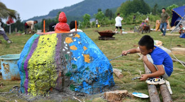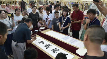 8月31日,在奥地利维也纳,游客在上美景宫前与300周年的标识合影留念。
