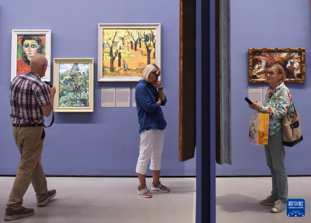 8月31日,在奥地利维也纳,一名观众在下美景宫内参观展品。