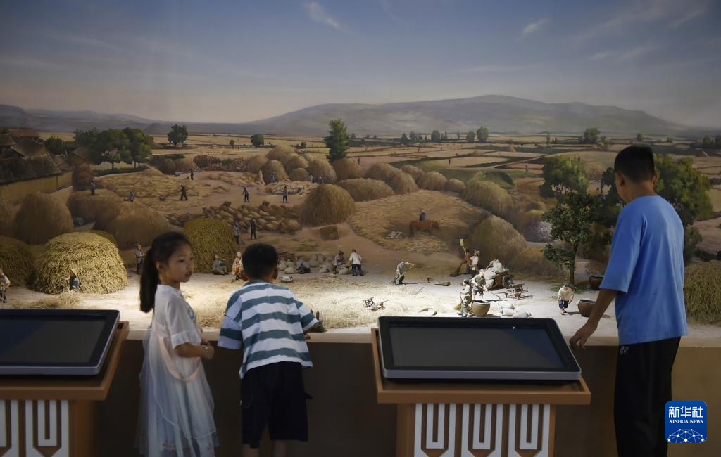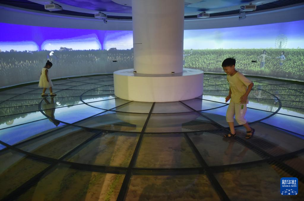 9月16日,小朋友在温县小麦博物馆内体验电子互动设备。