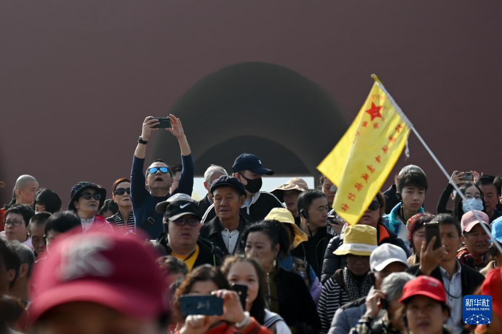 10月24日上午,观众在午门广场排队等候进入故宫。