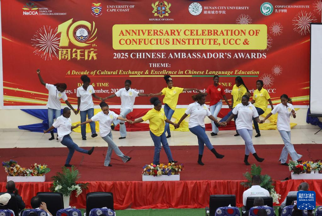 当日,加纳海岸角大学孔子学院举办成立10周年庆典。加纳国家课程与评估委员会理事会主席文森特·阿桑富尔在庆典上表示,加纳计划于2026年在全国中小学正式引入中文课程。