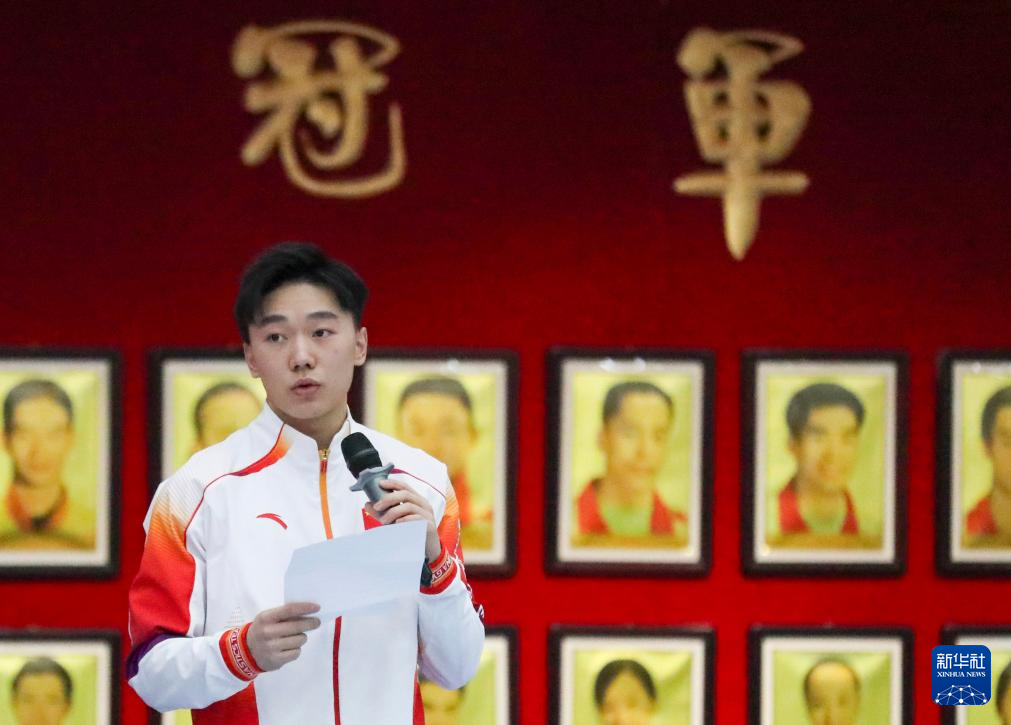 12月22日,再次登榜的中国体操队运动员邹敬园在登榜仪式上发言。