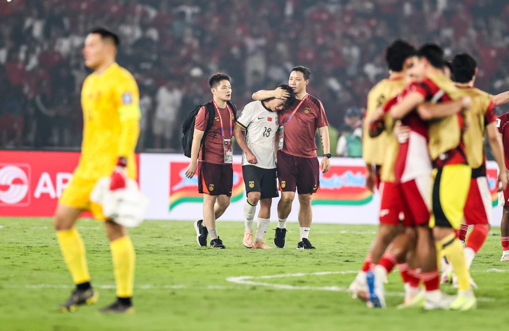 6月5日,在印度尼西亚雅加达举行的2026年世界杯亚洲区预选赛18强赛C组第九轮比赛中,中国队客场0比1不敌印度尼西亚队,无缘美加墨世界杯正赛。新华社记者 贾浩成 摄