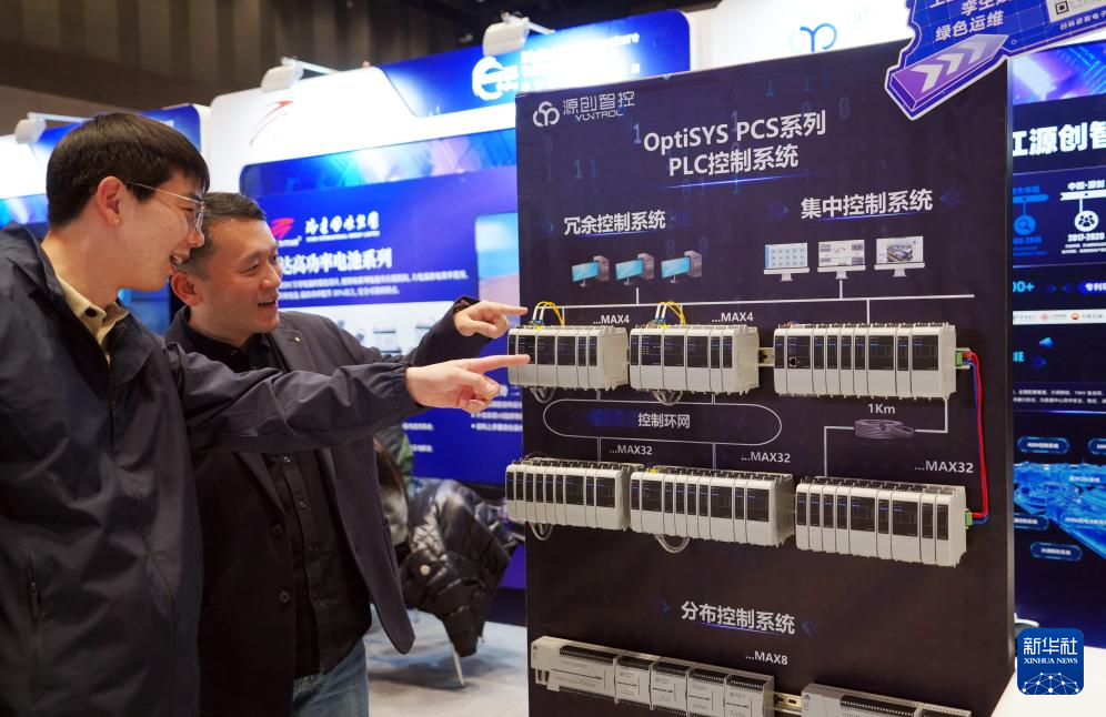 12月11日, 工作人员在展台上介绍展示的控制系统展品。