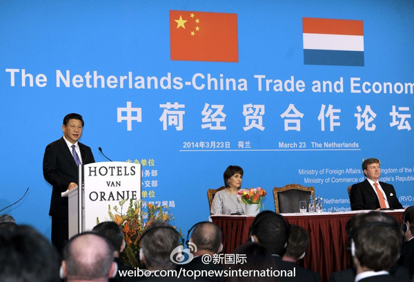 ????新華網(wǎng)北京3月24日電 據(jù)新華社“新國際”微博報(bào)道, 習(xí)近平主席出席中荷經(jīng)貿(mào)合作論壇開幕式,暢談豐碩合作成果。他還說:“荷蘭足球隊(duì)被稱為世界足球的‘無冕之王’。荷蘭是‘歐洲菜籃子’和‘郁金香王國’?!绷?xí)近平這番話博得滿場掌聲和笑聲。