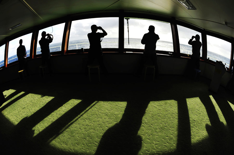 ????經(jīng)中國海上搜救中心同意,“雪龍”號科考船28日下午全速趕往澳大利亞海事安全局最新調(diào)整的搜尋區(qū),并將與“海巡01”會合,進行中方船只現(xiàn)場指揮聯(lián)絡工作的交接。根據(jù)國際調(diào)查團隊向澳方提出的建議,澳大利亞海事安全局28日調(diào)整了搜索部署,搜尋范圍發(fā)生較大改變。新華社記者張建松攝