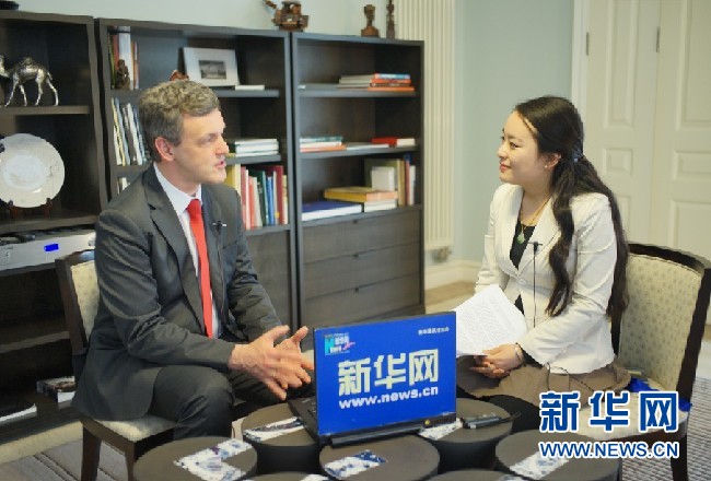 比利時王國駐華大使馬懷宇接受新華網(wǎng)專訪。新華網(wǎng)記者郭小天攝