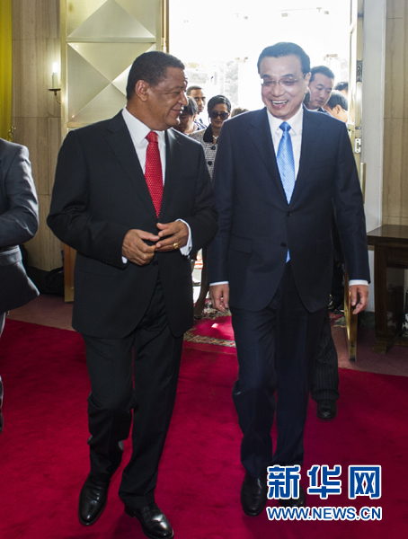 國務(wù)院總理李克強(qiáng)當(dāng)?shù)貢r(shí)間6日上午在亞的斯亞貝巴國家宮會見埃塞俄比亞總統(tǒng)穆拉圖。
