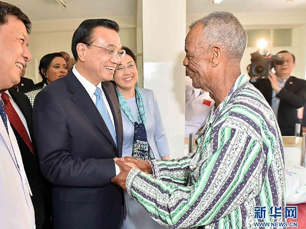 ??? 5月6日,中國國務院總理李克強與埃塞俄比亞總統(tǒng)穆拉圖一同來到亞的斯亞貝巴阿勒塔醫(yī)院,看望受益于中國免費白內(nèi)障手術“光明行”活動的埃塞俄比亞患者。新華社記者李濤攝
