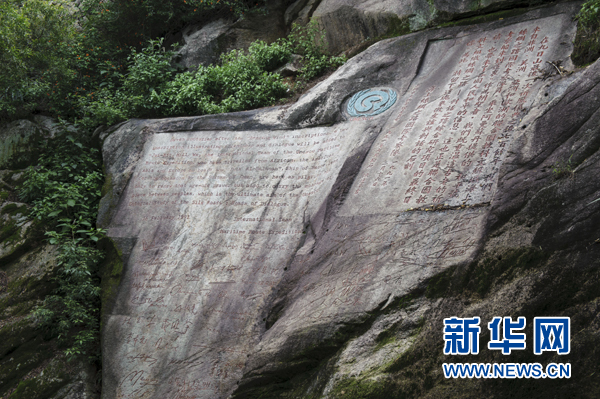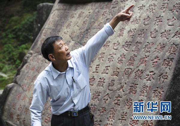 ??? 走進(jìn)那段記錄在石壁上的海絲歷史聯(lián)合國教科文組織“海絲”考察隊(duì)于1991年觀摩祈風(fēng)石刻,認(rèn)定此為宋元時(shí)期海上絲綢之路起點(diǎn)的文物佐證,并做中英文新刻(5月8日攝)。 26年來,今年65歲的文物管理所原所長胡家其老人已經(jīng)記不得多少次向人們講述九日山作為宋元時(shí)期海上絲綢之路起點(diǎn)的歷史,但他從不言倦。福建泉州豐州鎮(zhèn)九日山因“山中無石不刻字”而與眾不同。這座海拔只有一百多米的小山現(xiàn)存古代摩崖石刻77方,其中宋代石刻61方。這61方石刻中又有10方直接與海上絲綢之路有關(guān),記錄了公元1174年至1266年期間11次官辦祈風(fēng)儀式。新華社記者 姜克紅 攝