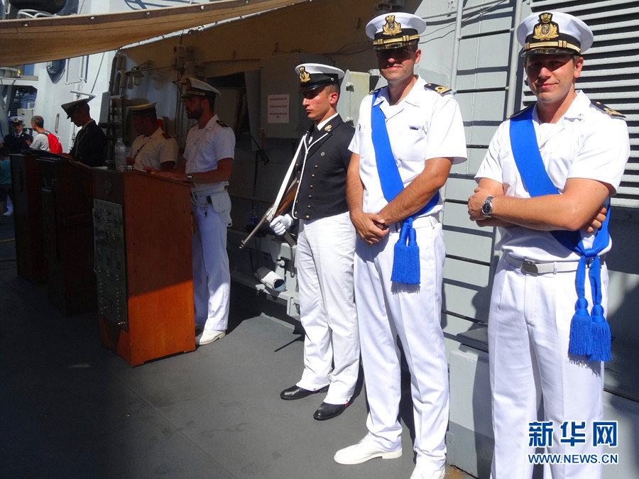 ????“路易吉·杜蘭德·德拉佩訥號”驅逐艦上的工作人員。新華網記者 周喆 攝