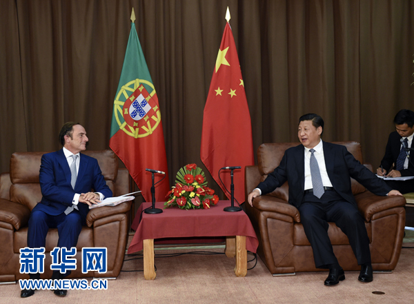 國家主席習近平24日在葡萄牙特塞拉島會見葡萄牙總統(tǒng)代表、副總理波塔斯。