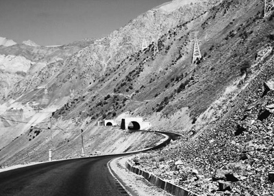 連接塔吉克斯坦南部和北部的塔烏公路是利用上合組織框架內(nèi)中國政府提供的優(yōu)惠信貸修復(fù)的。圖為塔烏公路一段。本報(bào)記者 黃文帝攝