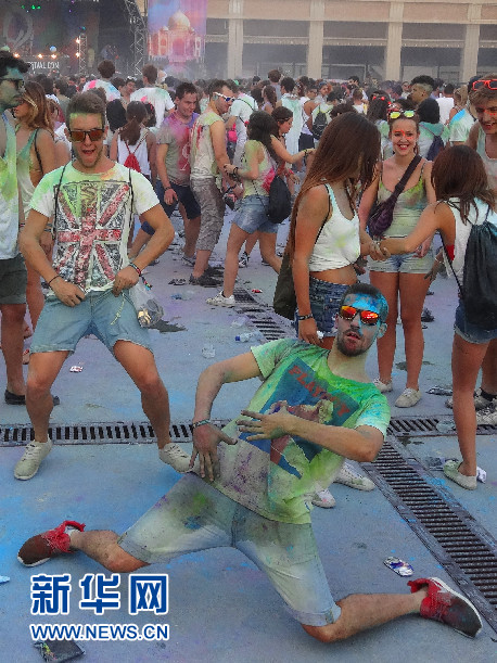 “2014巴塞羅那霍利節(jié)”現(xiàn)場(chǎng)的年輕人 (新華社記者周喆拍攝)
