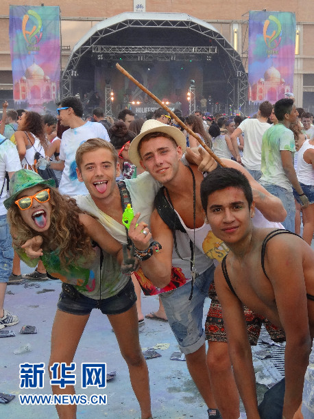 “2014巴塞羅那霍利節(jié)”現(xiàn)場的年輕人 (新華社記者周喆拍攝)