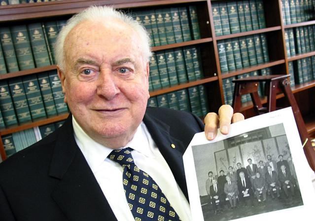 ????2004年,澳大利亞前總理惠特拉姆向中國記者展示他1986年訪華時同鄧小平的合影。新華社記者 米立公 攝