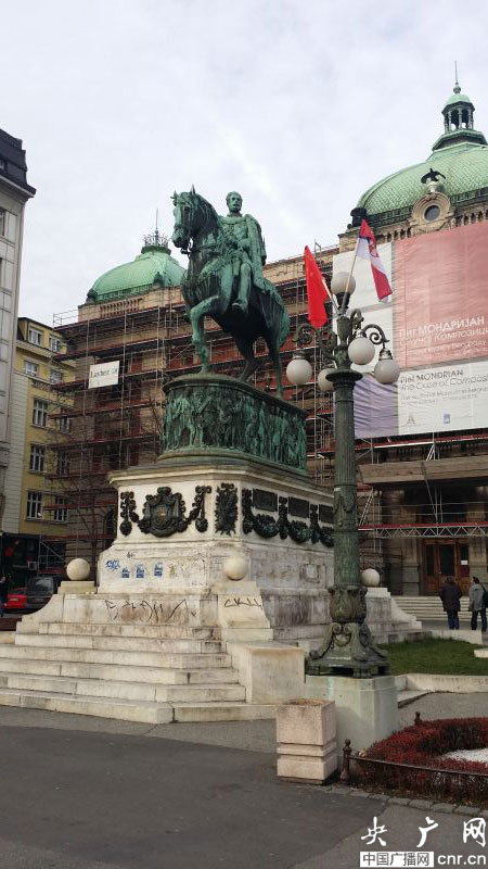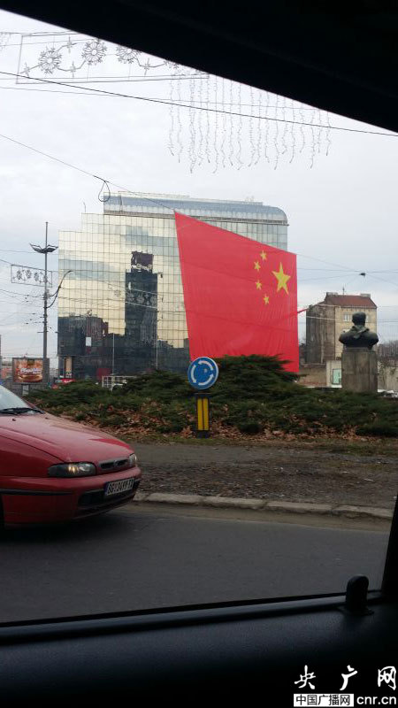 ??? 盡管人們穿著厚厚的外衣,但貝爾格萊德卻并不寒冷,更像是秋天剛剛來到。這兩天,無論是新城區(qū)還是傳統(tǒng)的舊城都紛紛出現(xiàn)了中國的色彩。舊城米哈伊洛大公街附近,幾條馬路都掛起了中塞兩國的國旗??ㄈR梅格丹城堡還正在進(jìn)行「世界遺產(chǎn)在中國」圖片展。最神奇的是,記者偶遇的一位老奶奶,得知記者come from China后,立刻用中文唱起了“我愛你中國”,瞬間親切了很多。
