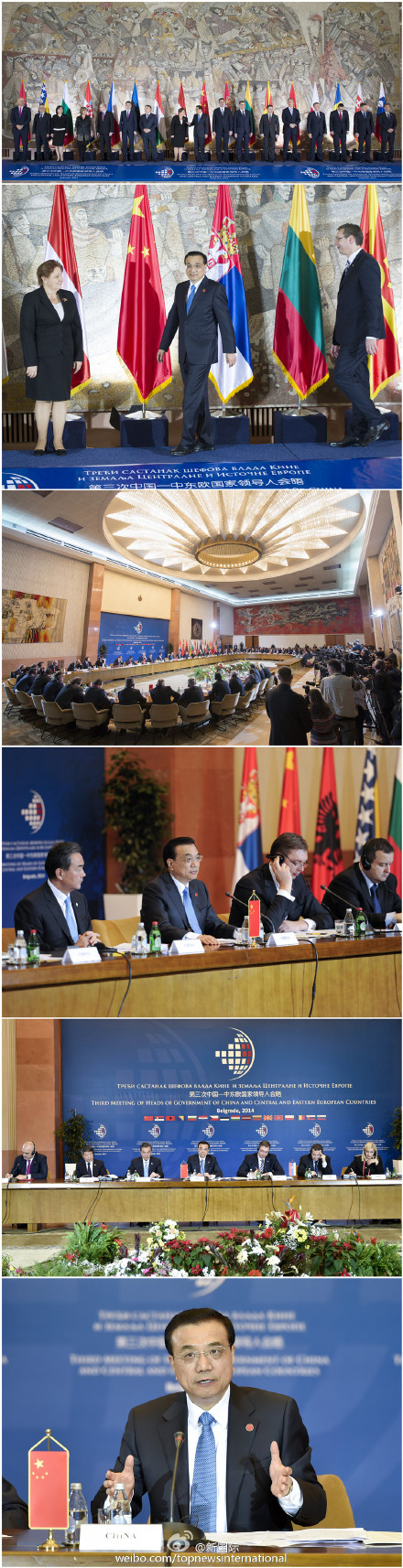 ??? 新華網(wǎng)北京12月17日電 據(jù)新華社“新國際”微博報道,當(dāng)?shù)貢r間16日下午,李克強總理在貝爾格萊德出席第三次中國-中東歐國家領(lǐng)導(dǎo)人會晤。中東歐16國領(lǐng)導(dǎo)人與會。李克強與塞爾維亞總理武契奇共同主持會晤,并就推進(jìn)中國與中東歐合作提出五點建議,與會各方深入討論,達(dá)成了深化合作的廣泛共識。