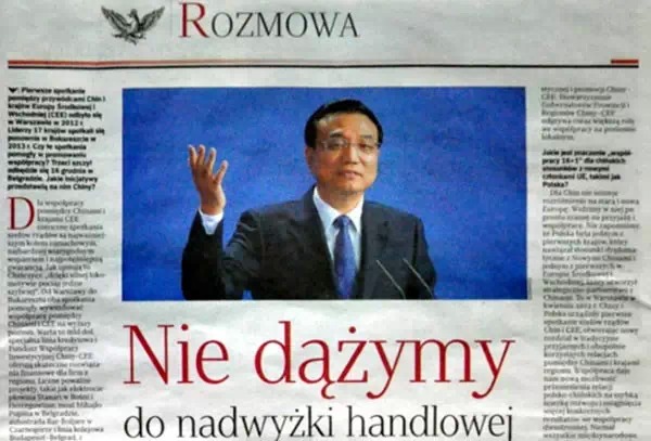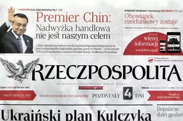 ????波蘭《共和國(guó)報(bào)》刊登對(duì)李克強(qiáng)聯(lián)合書(shū)面采訪稿件