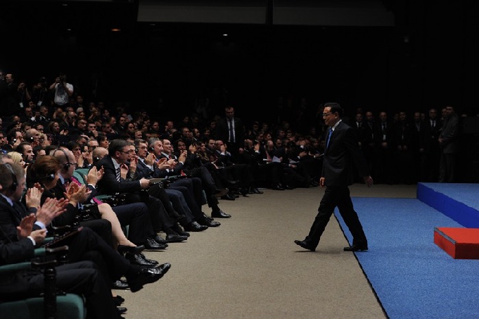 李克強出席中國—中東歐國家第四屆經(jīng)貿(mào)論壇并致辭。 新華社 饒愛民 攝