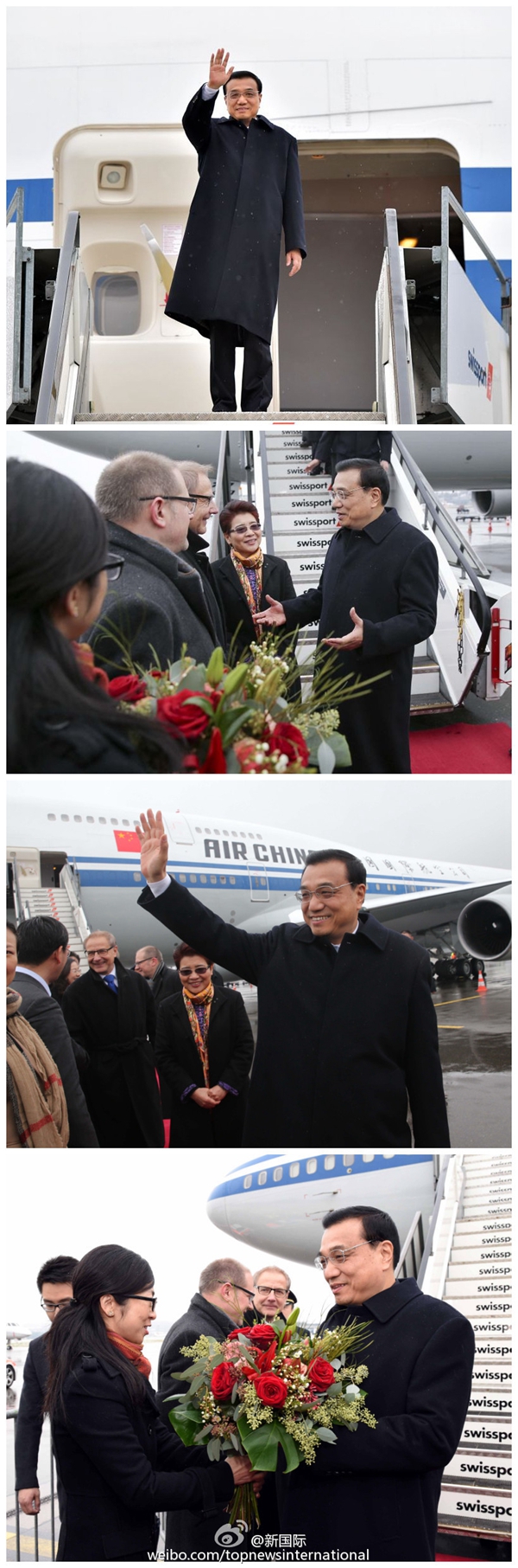 ????新華網(wǎng)北京1月20日電? 據(jù)新華社“新國(guó)際”微博報(bào)道,當(dāng)?shù)貢r(shí)間20日下午,李克強(qiáng)總理抵達(dá)瑞士,出席世界經(jīng)濟(jì)論壇年會(huì)并對(duì)瑞士進(jìn)行工作訪問。李克強(qiáng)說,我期待同各界深入交流,為維護(hù)世界和平穩(wěn)定,促進(jìn)經(jīng)濟(jì)強(qiáng)勁可持續(xù)平衡增長(zhǎng)作出努力。他說,將繼續(xù)擴(kuò)大中瑞自貿(mào)協(xié)定成果,將金融打造成兩國(guó)合作新亮點(diǎn)。