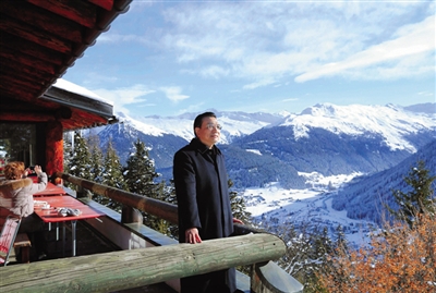 世經(jīng)論壇工商對(duì)話會(huì)及論壇年會(huì)開(kāi)幕前1小時(shí),李克強(qiáng)來(lái)到下榻飯店邊海拔1800米的沙茨阿爾卑山頂,放眼達(dá)沃斯。