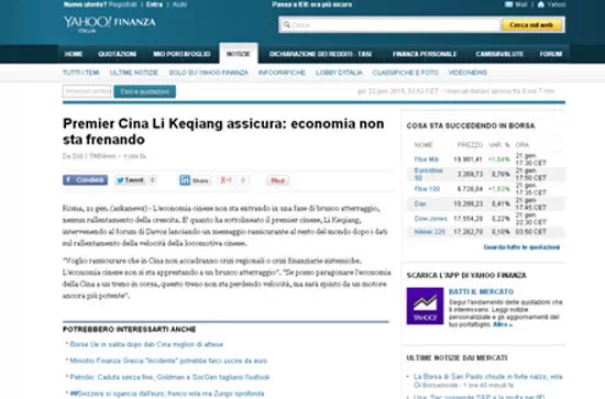意大利askanews21日?qǐng)?bào)道稱中國國家總理李克強(qiáng)參加達(dá)沃斯經(jīng)濟(jì)論壇并發(fā)表講話,向世界傳達(dá)了一個(gè)令人放心的信息——中國經(jīng)濟(jì)不會(huì)進(jìn)入硬著陸階段,經(jīng)濟(jì)增長不會(huì)遭遇急剎車。