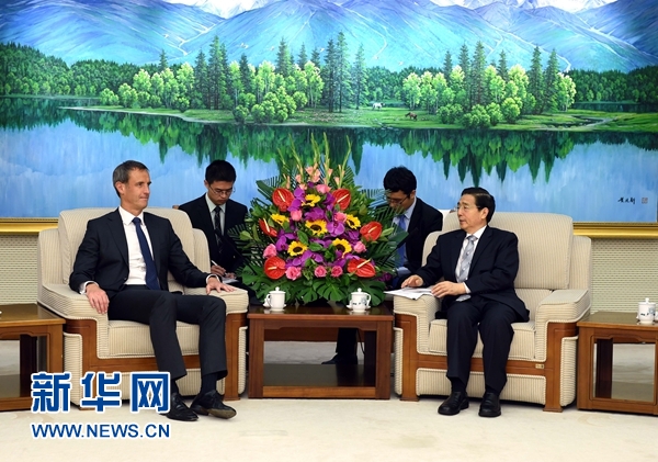 5月28日,國務委員、公安部部長郭聲琨在北京會見歐洲警察署署長溫賴特。 新華社記者 饒愛民 攝