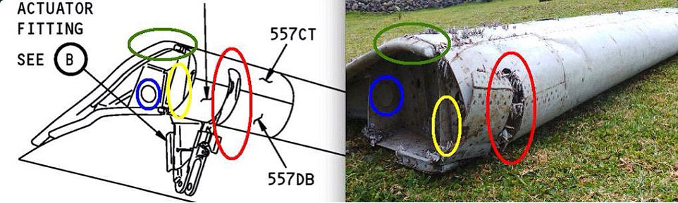 航空專家根據(jù)現(xiàn)場圖片分析稱,這塊殘骸或為波音777機翼的襟副翼,用于控制飛機的水平傾斜,而馬航MH370客機則同屬于波音777機型。
