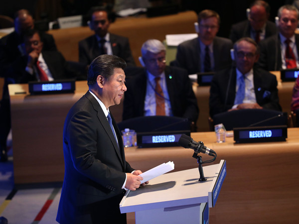 26日,在聯(lián)合國發(fā)展峰會上,習近平發(fā)表題為《謀共同永續(xù)發(fā)展 做合作共贏伙伴》的重要講話。