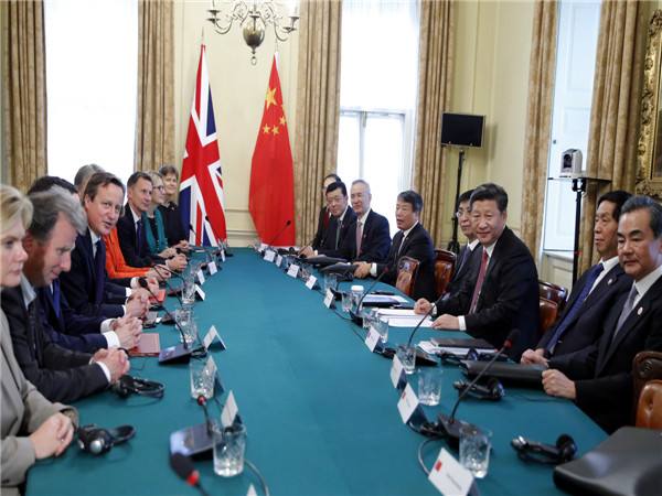習(xí)近平說(shuō):“中英關(guān)系和中歐關(guān)系發(fā)展面臨繼往開來(lái)的重要機(jī)遇。英國(guó)是歐盟重要成員國(guó),中英關(guān)系同中歐關(guān)系相輔相成。”