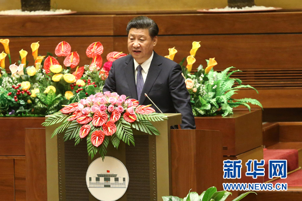 ???? 11月6日,中共中央總書(shū)記、國(guó)家主席習(xí)近平在越南國(guó)會(huì)發(fā)表題為《共同譜寫(xiě)中越友好新篇章》的重要演講。 新華社記者 龐興雷 攝