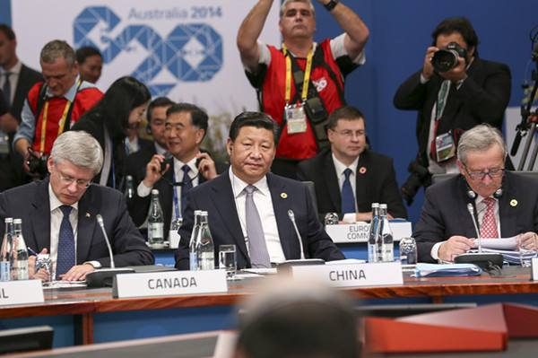 2014年11月15日,G20第九次峰會在澳大利亞布里斯班舉行。國家主席習近平出席會議并發(fā)表題為《推動創(chuàng)新發(fā)展 實現(xiàn)聯(lián)動增長》的重要講話。 新華社發(fā)