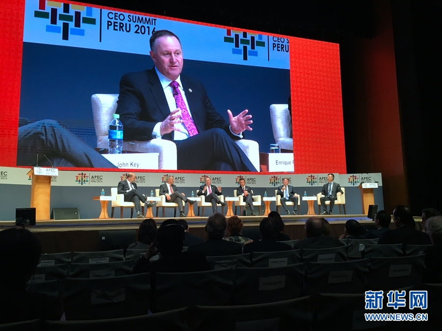 當(dāng)?shù)貢r(shí)間11月19日,APEC工商領(lǐng)導(dǎo)人峰會(huì)舉行主題為“重新設(shè)計(jì)貿(mào)易”的現(xiàn)場(chǎng)討論會(huì)。圖為新西蘭總理約翰·基在討論會(huì)上發(fā)言。
