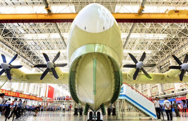 2016年7月23日,大型滅火/水上救援水陸兩棲飛機(jī)AG600在廣東珠??傃b下線。(新華社記者 盧漢欣攝)
