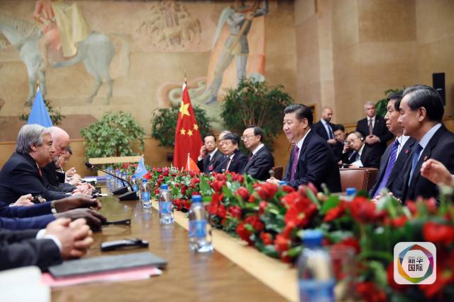 離開世界衛(wèi)生組織總部,習(xí)主席來到萬國宮瑞士廳,同第71屆聯(lián)大主席湯姆森和聯(lián)合國秘書長古特雷斯舉行會見。這也是古特雷斯今年1月正式履新聯(lián)合國“掌門人”后,習(xí)主席和他的第一次會面。