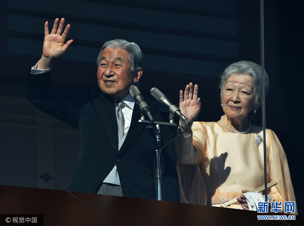 當地時間2017年12月23日,日本東京,日本明仁天皇慶祝84歲生日,在皇宮的陽臺上向祝福者揮手致意。(圖片來源:視覺中國)