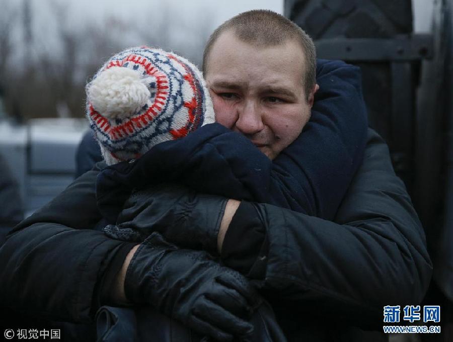 12月27日,烏克蘭哈爾科夫,獲釋戰(zhàn)俘抵達(dá)哈爾科夫。烏克蘭政府軍與東部民間武裝當(dāng)日舉行了大規(guī)模的交換戰(zhàn)俘行動(dòng)。(圖片來源:視覺中國)