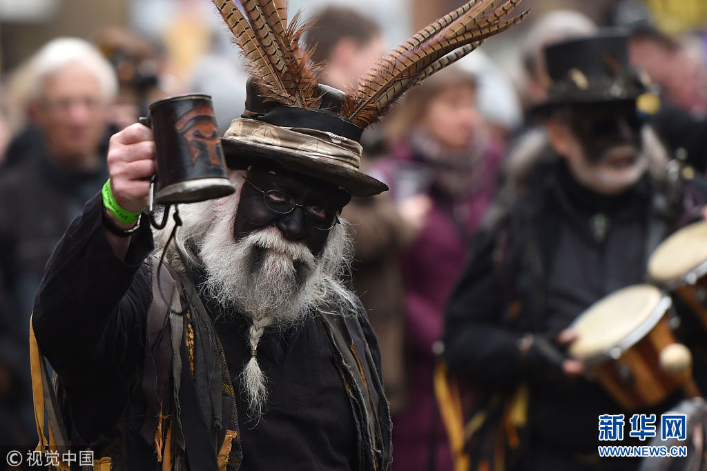 當(dāng)?shù)貢r間2018年1月13日,英國劍橋郡惠特爾西,民眾打扮成憨厚的“稻草熊”等各種形象,伴隨著樂隊的奏樂游行,慶祝第39屆惠特爾西“稻草熊”節(jié)。(圖片來源:視覺中國)