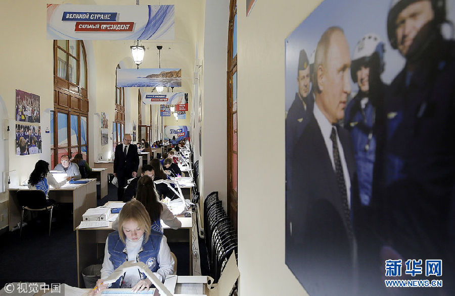 當?shù)貢r間2018年1月17日,俄羅斯莫斯科,俄羅斯總統(tǒng)普京大選競選總部的志愿者核查收集到的支持普京參選的簽名。(圖片來源:視覺中國)