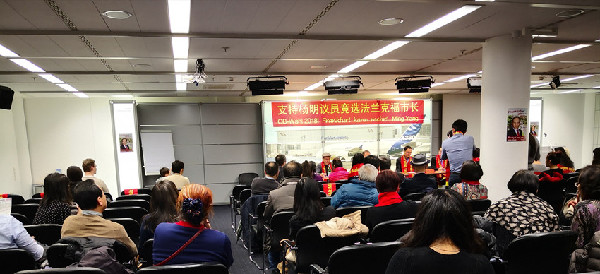 當(dāng)?shù)貢r(shí)間20日下午,近百名旅居德國法蘭克福的華人在德國法蘭克福機(jī)場舉行會議,為首位競選法蘭克福市市長的德國華人楊明先生吶喊助威,組織選票。