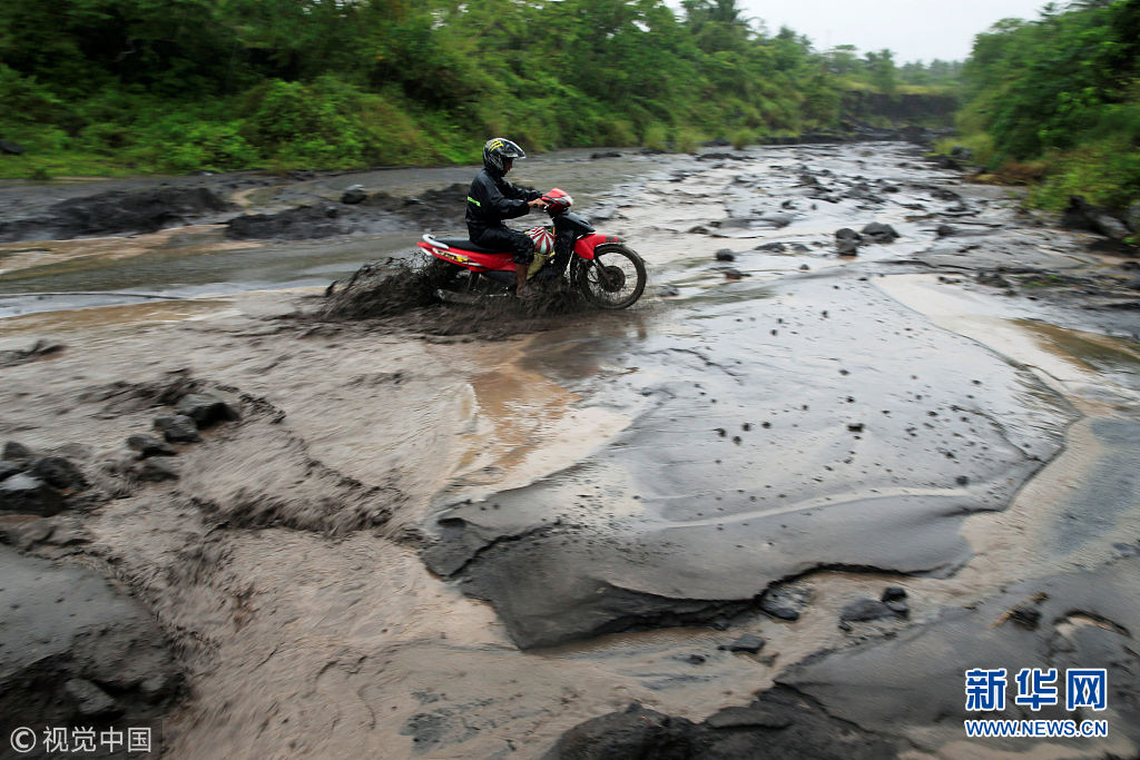 菲律賓馬榮火山持續(xù)噴發(fā) 火山灰落入河中變泥漿