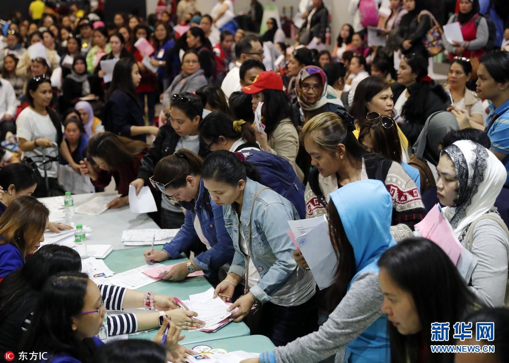 當(dāng)?shù)貢r間2018年2月21日,菲律賓馬尼拉,從科威特返回的菲律賓海外勞工抵達(dá)馬尼拉國際機(jī)場。據(jù)外媒報道,宿霧太平洋航空公司為至少396名海外菲律賓工人提供空運支持,助其免費搭乘飛機(jī)回家。據(jù)悉,菲律賓政府已下令禁止民眾前往科威特務(wù)工。據(jù)悉,菲律賓總統(tǒng)杜特爾特稱,近來有在科威特打工的菲律賓女傭因不堪虐待或性侵選擇自殺。(圖片來源: 東方IC)