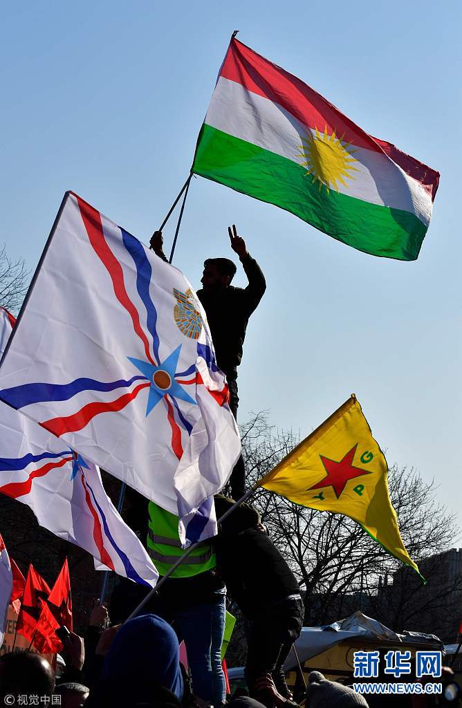 當(dāng)?shù)貢r(shí)間2018年3月3日,德國柏林,當(dāng)?shù)孛癖娕e行游行,抗議土耳其對敘利亞阿夫林地區(qū)的庫爾德人采取軍事行動(dòng)。(圖片來源:視覺中國)