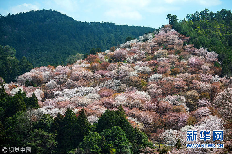 4月3日,日本奈良吉野,當?shù)貦鸦ㄊ⒎?,吸引眾多游客前來觀賞。(圖片來源:視覺中國)