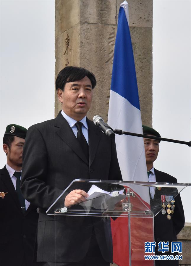 4月8日,在法國(guó)諾萊特華工墓園,中國(guó)駐法大使翟雋在祭奠儀式上發(fā)言。新華社記者吳濤 攝