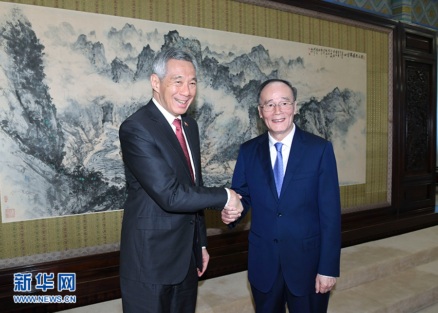 新華社北京4月9日電(記者譚晶晶)國(guó)家副主席王岐山9日在中南海會(huì)見(jiàn)新加坡總理李顯龍。