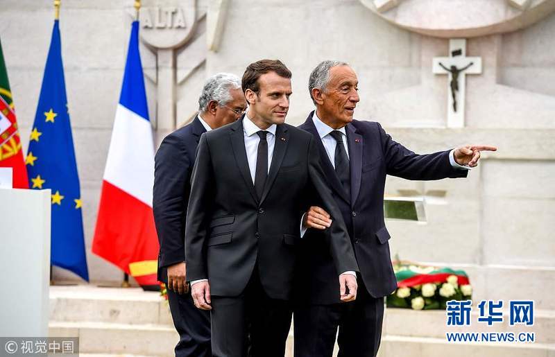 4月9日,法國里什堡,法國總統(tǒng)馬克龍和葡萄牙總統(tǒng)馬塞洛·雷貝洛·德索薩在一戰(zhàn)葡萄牙公墓出席一戰(zhàn)紀(jì)念儀式,紀(jì)念利斯戰(zhàn)役百年。(圖片來源:視覺中國)